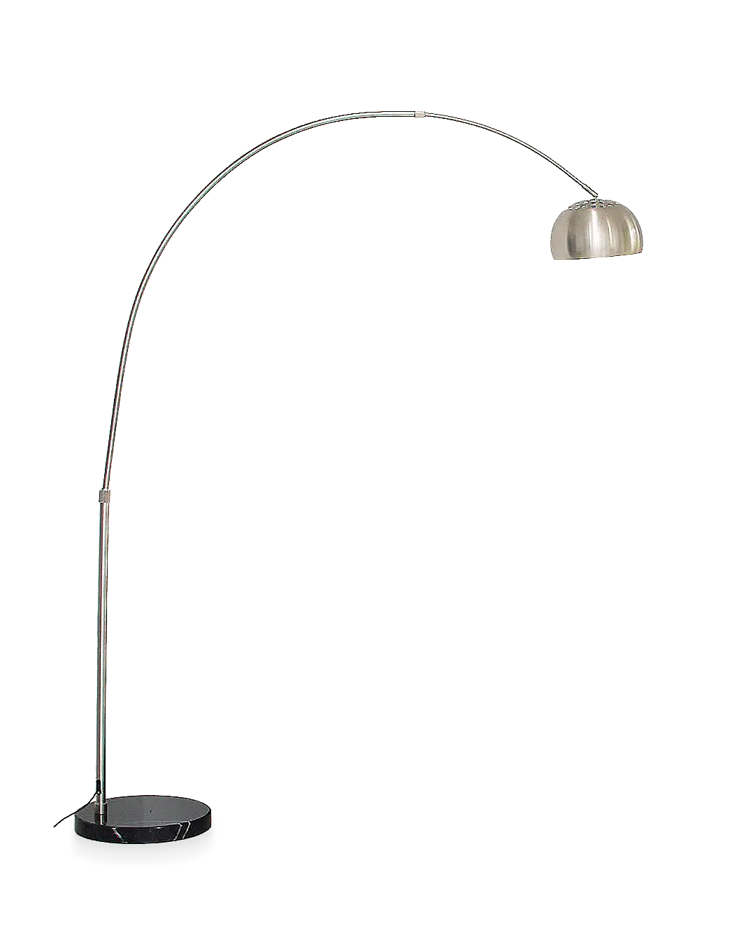 アーチを描くフロアライトは、ランプシェード、台座と全て丸みのある角を作らない、柔らかなデザイン。リビングルームや書斎、寝室にに心地よい明かりをつくり、空間を柔らかに演出します。