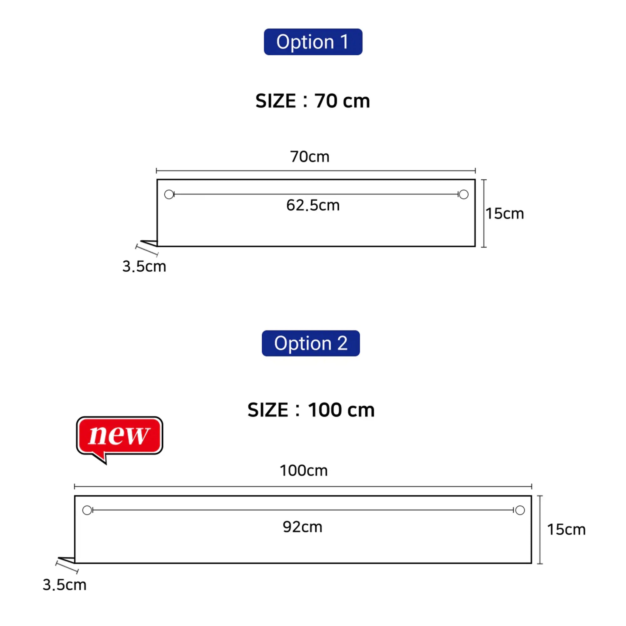100cmサイズは、画像では両端のみ棚受けが設置されていますが、商品仕様変更があり、中央にも棚受けがついています。