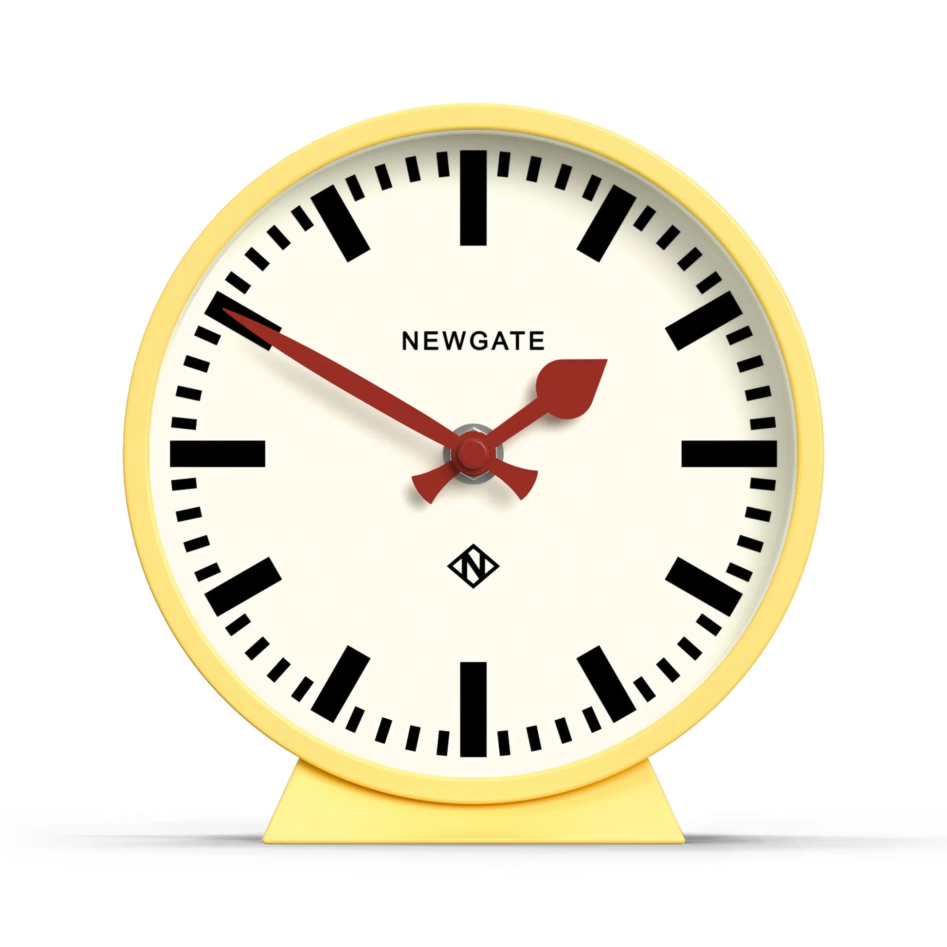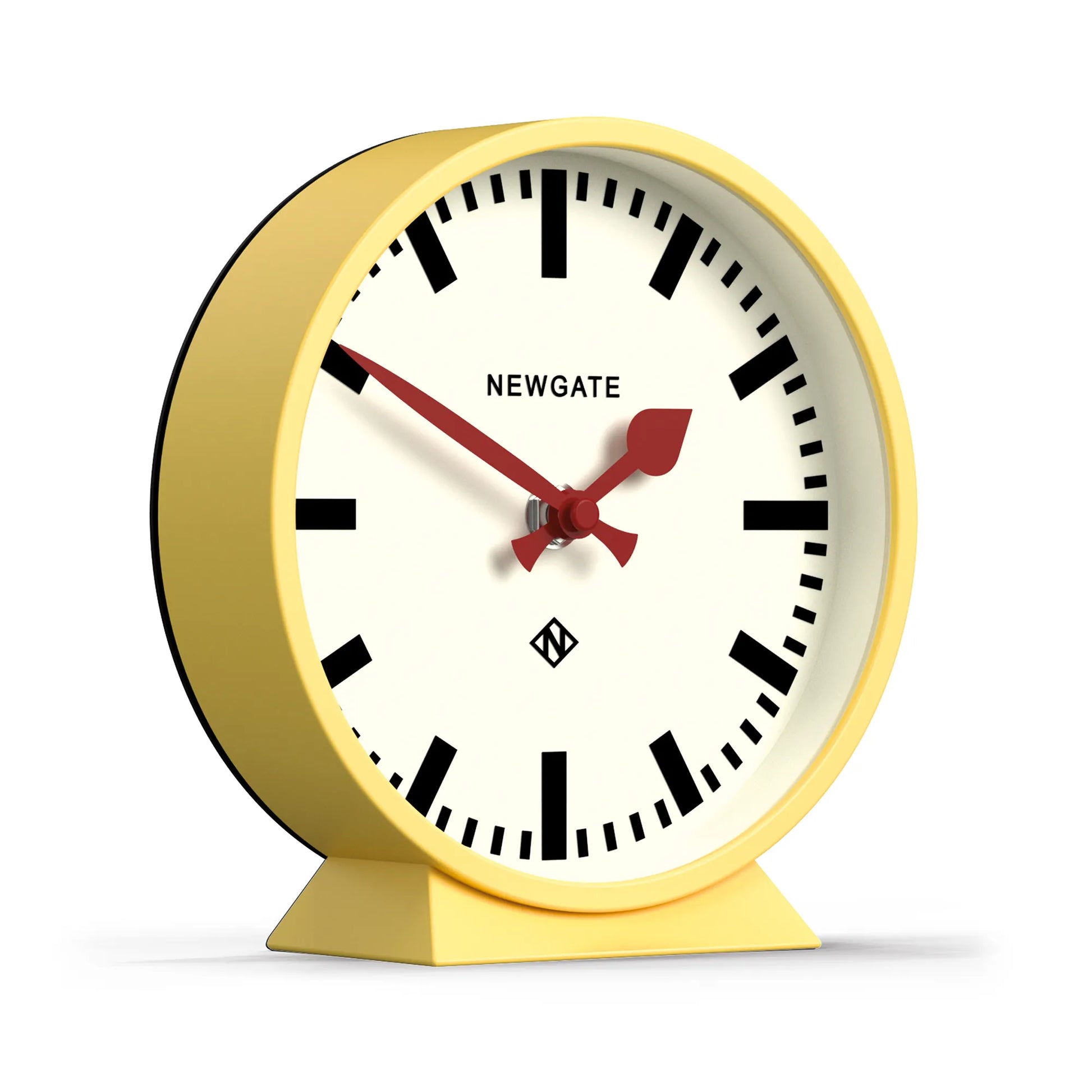 マットに仕上げた丸型ケースが印象的な、目を惹くイエローのマントルクロック。クラシックな鉄道時計から着想を得たアイコニックなステーションダイヤルに、太めのマーカーを合わせることで、視認性の高いミニマルな表情に仕上げています。