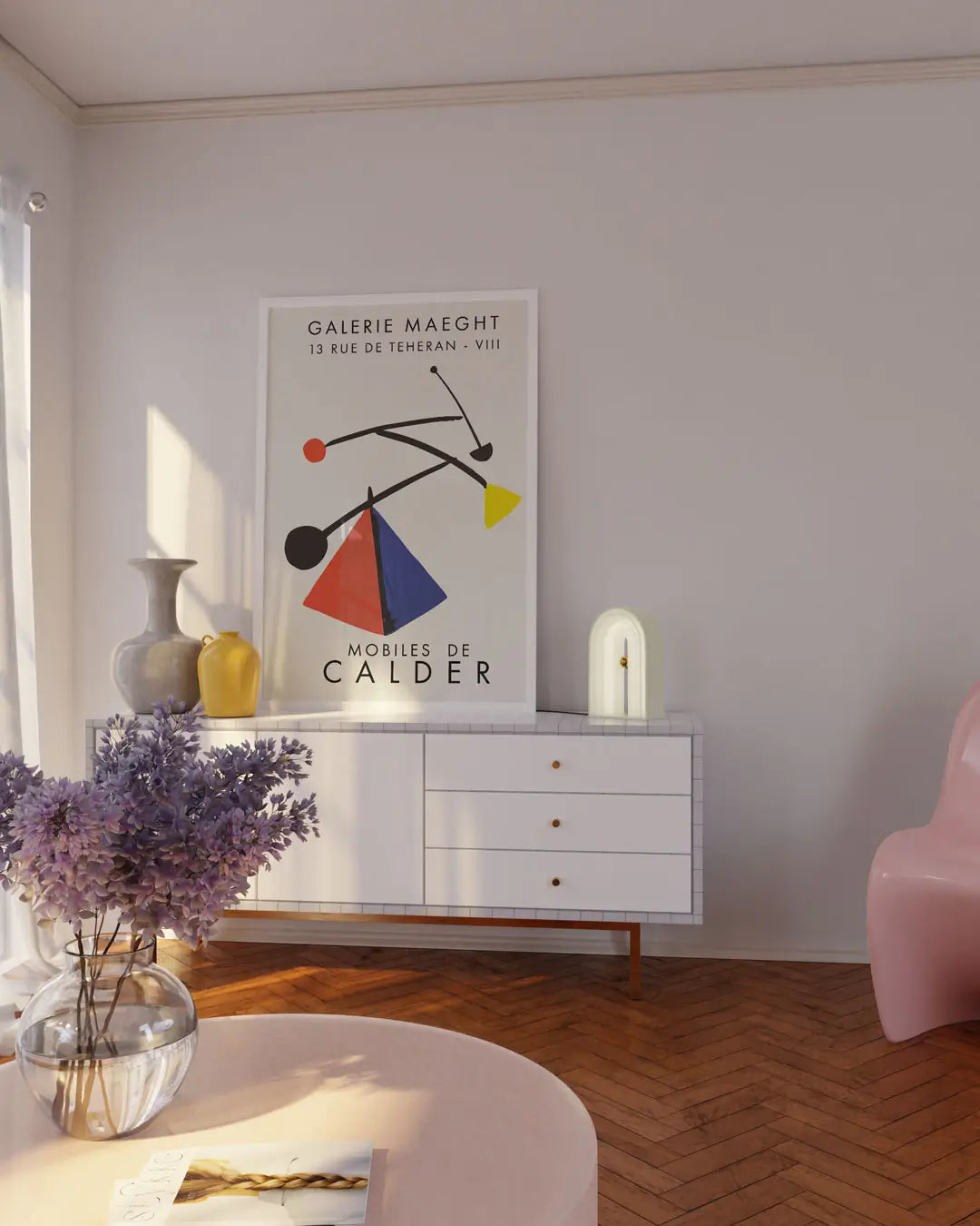 モビールを始めて芸術作品として世に出した、アメリカのアーティスト、アレクサンダー・カルダーの初めての作品をポスターに収めました。