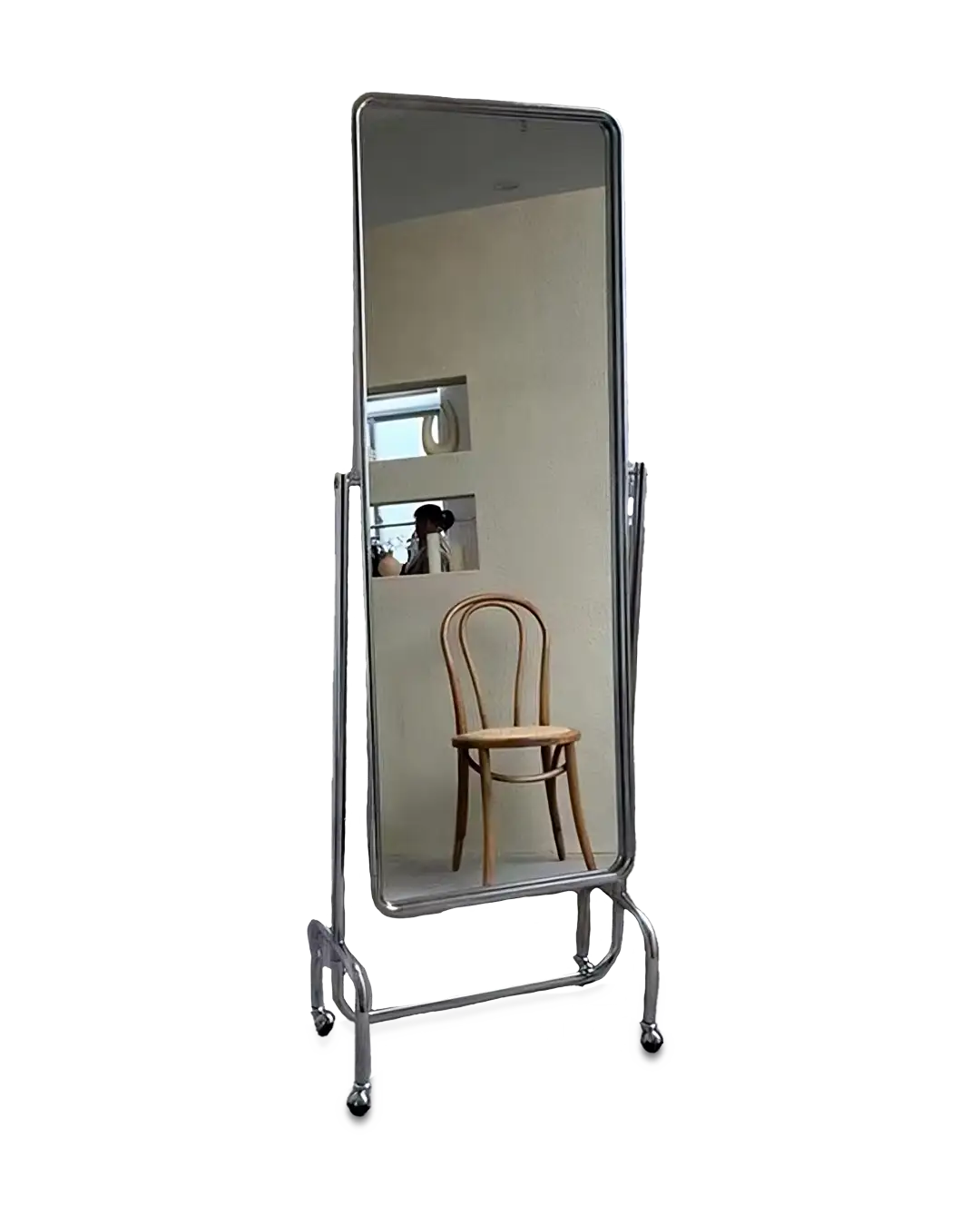 すっきりとしたラインのミニマルなデザインが、デザインと機能をシームレスに融合したバウハウスらしい、現代の自宅スペースに理想的な移動式全身鏡です。