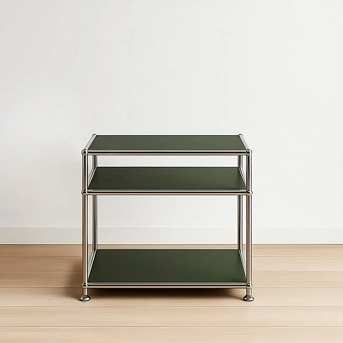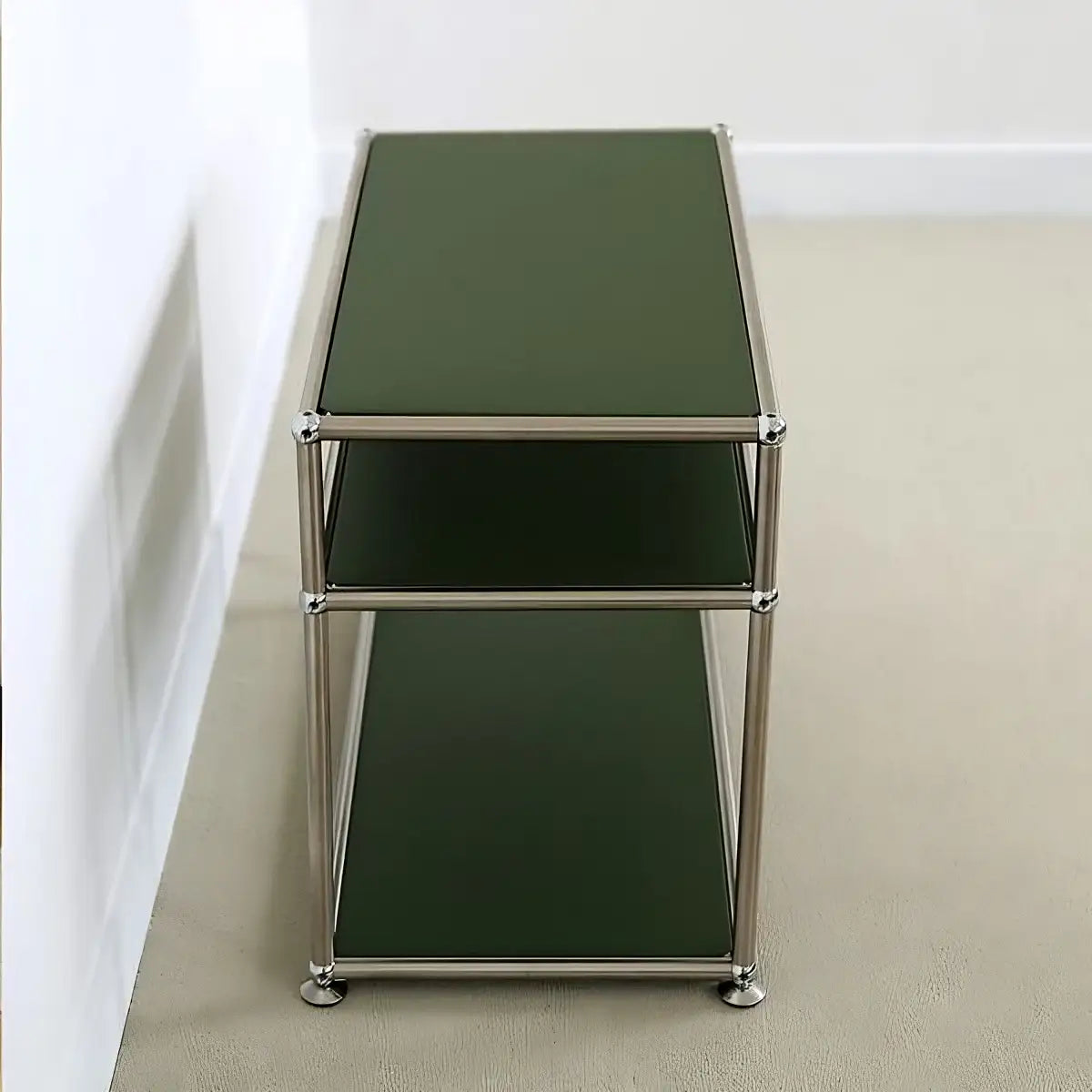 「520 3x1 ½」は、上段に幅の狭いモジュールを採用したモデルです。 視線を軽く見せながらも、下段にはしっかりとした収納力を確保。本やレコード、植物やアートピースなど、置くものに応じて高さを自然に分けられます。