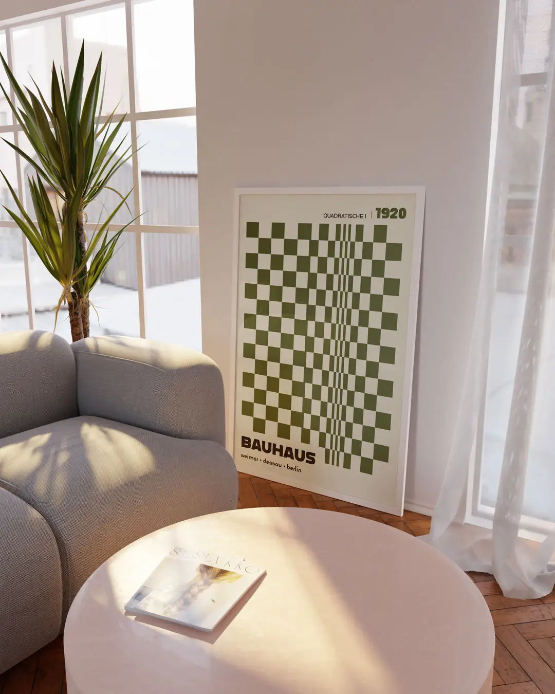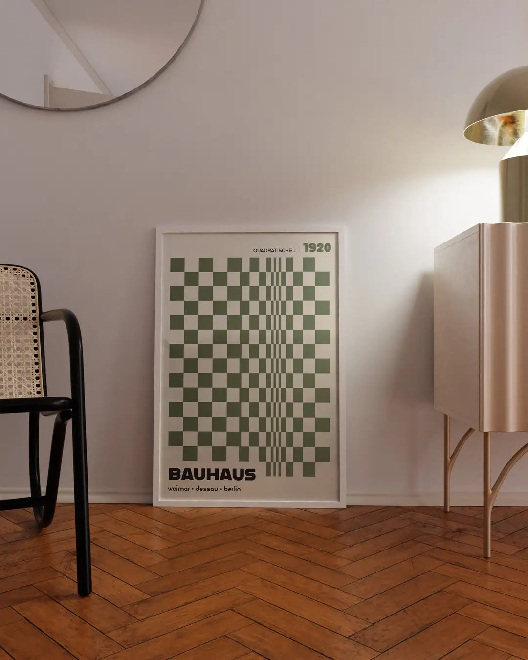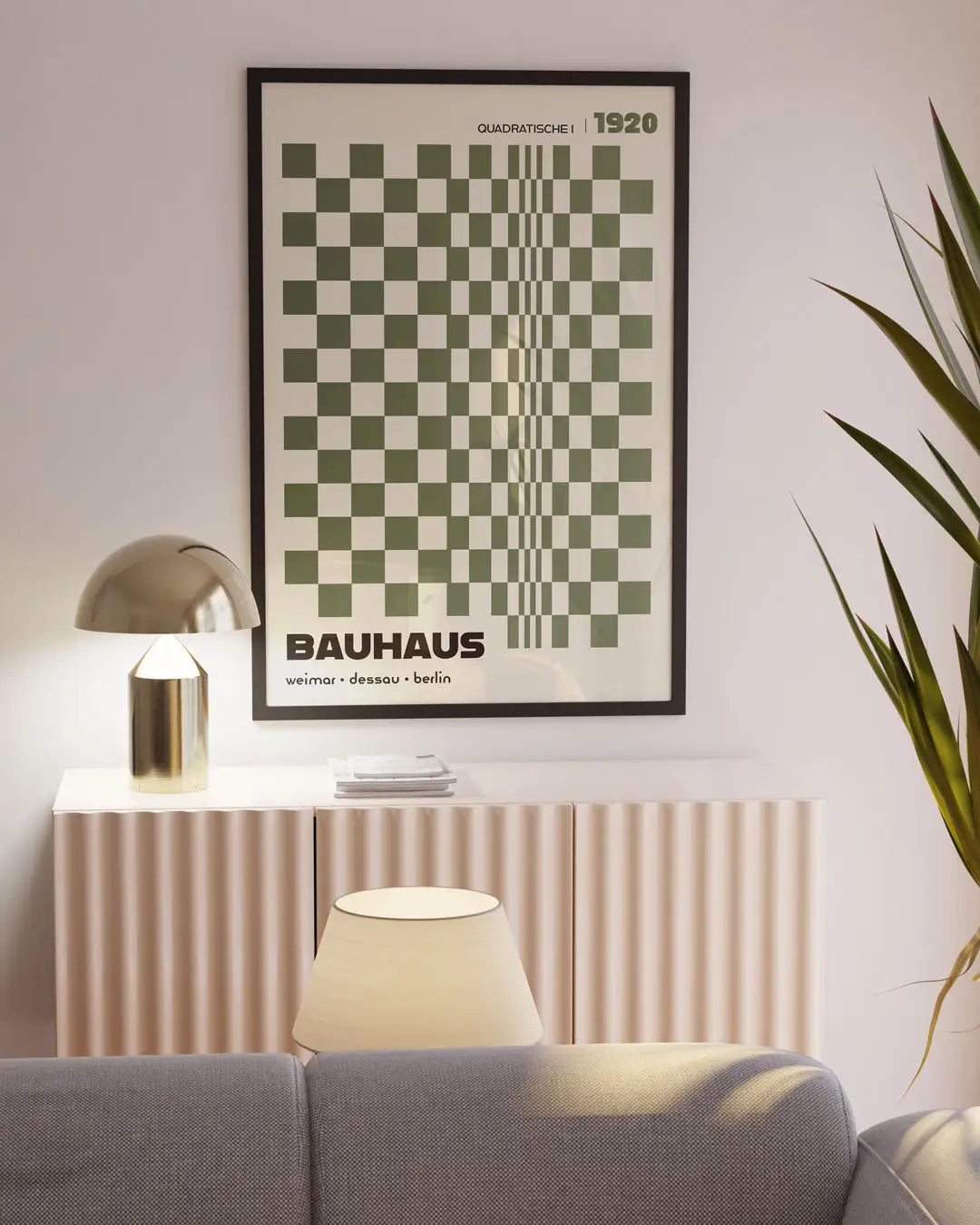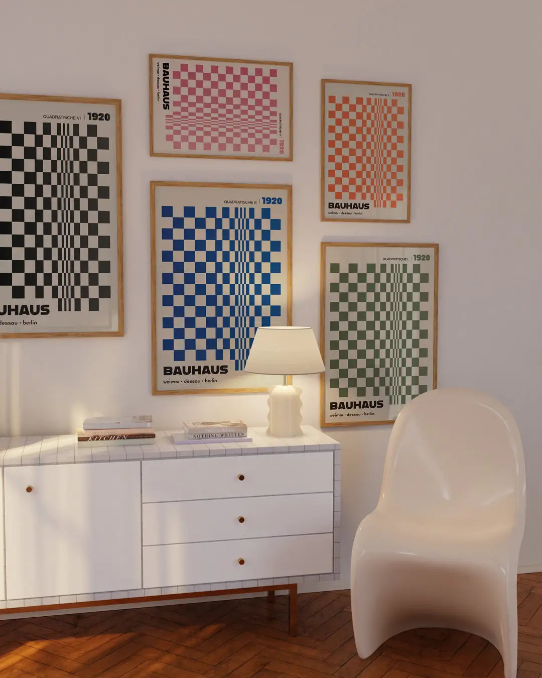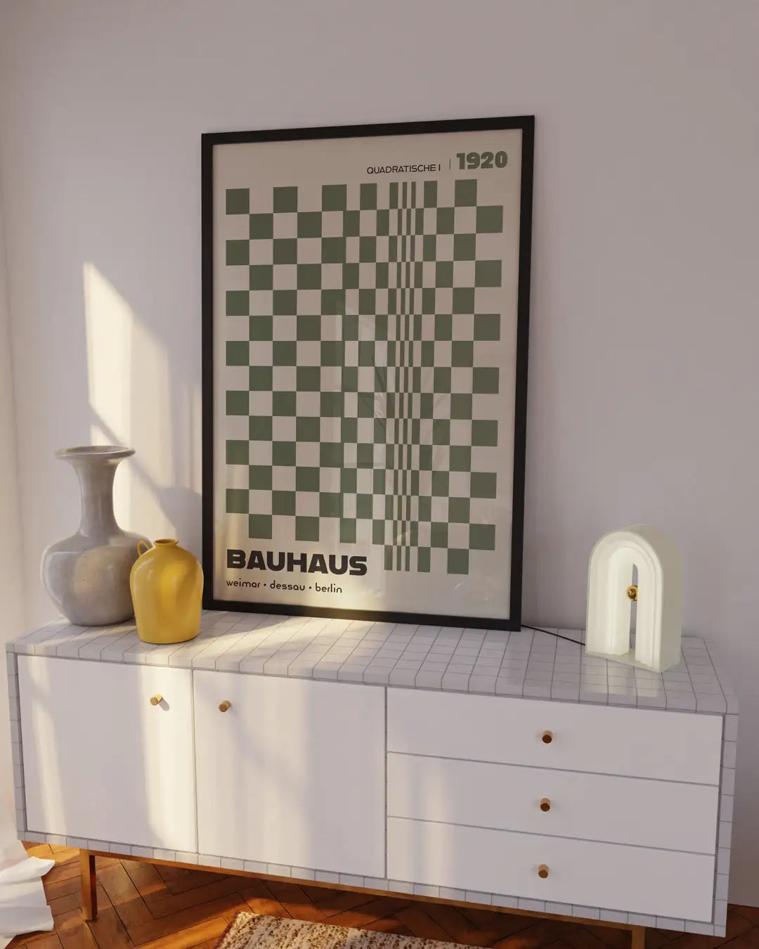 幾何学的かつ遊び心のあるデザインが特徴的な、バウハウスポスター。