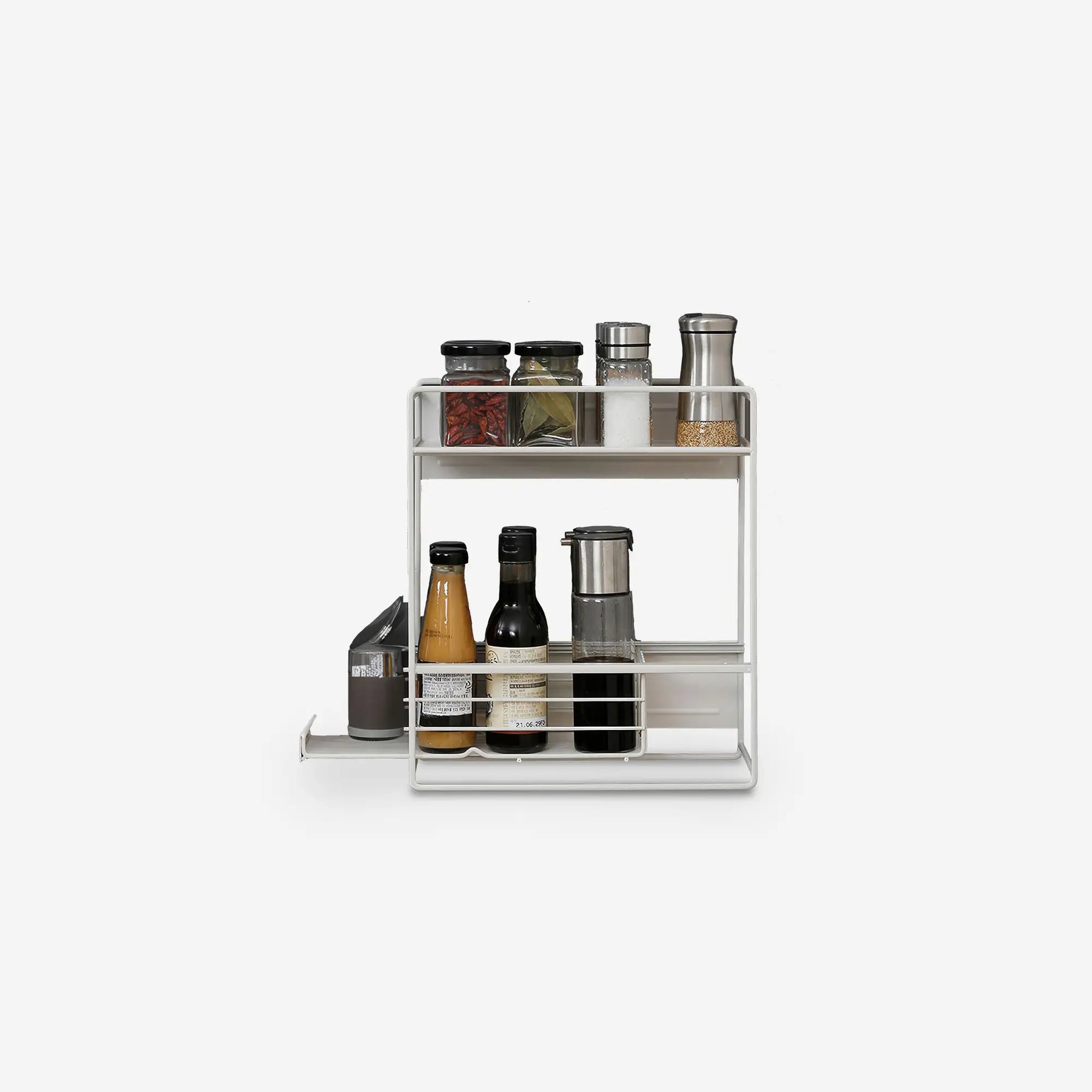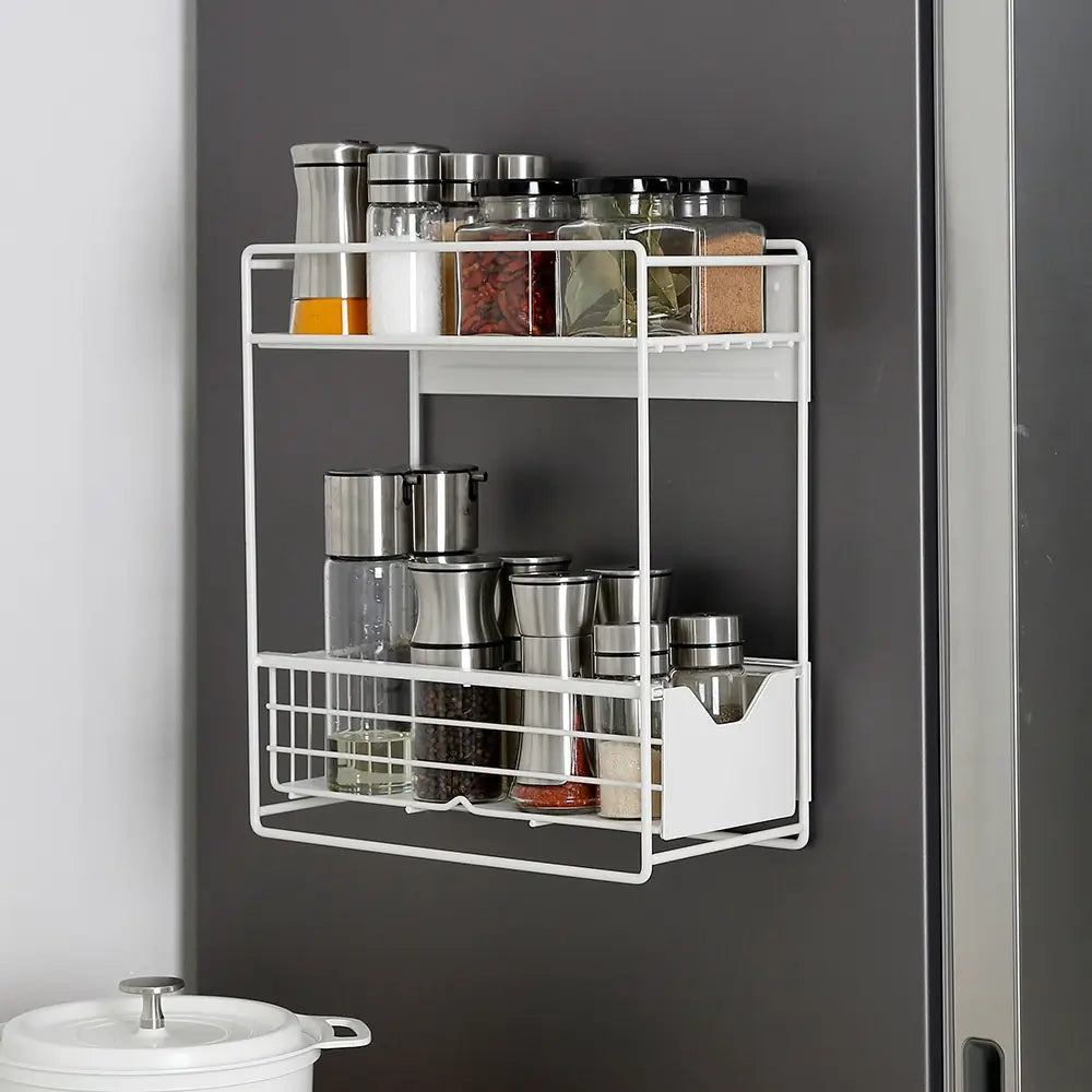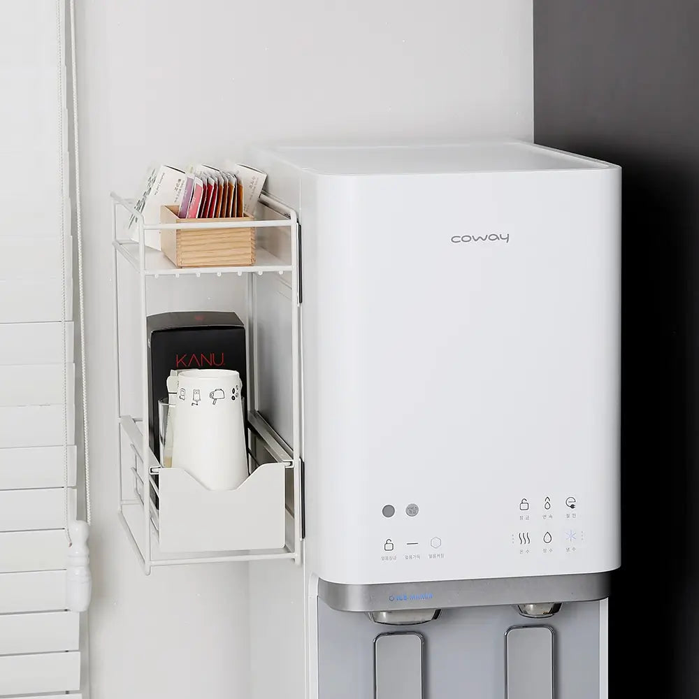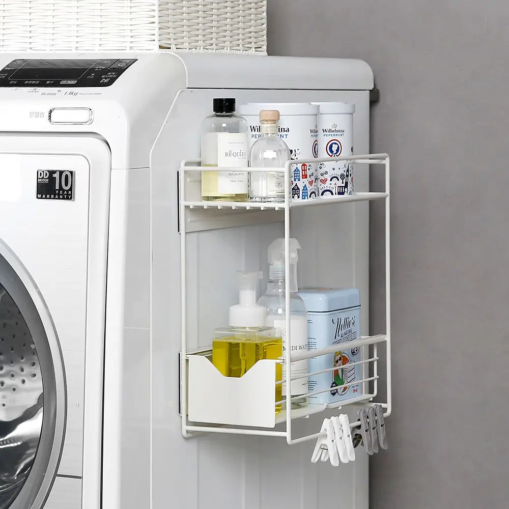 冷蔵庫や洗濯機、ウォーターサーバーなど、マグネットが取り付けられる場所ならどこにでも設置可能。手の届きにくいスペースに、調味料ボトルやキッチンツールなどを収納できます。
